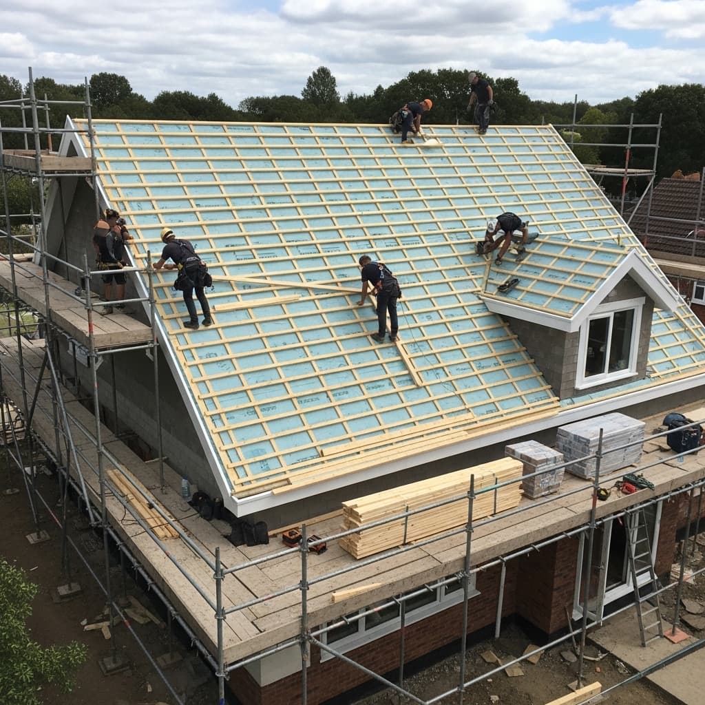 Unterdeckbahn und Lattung