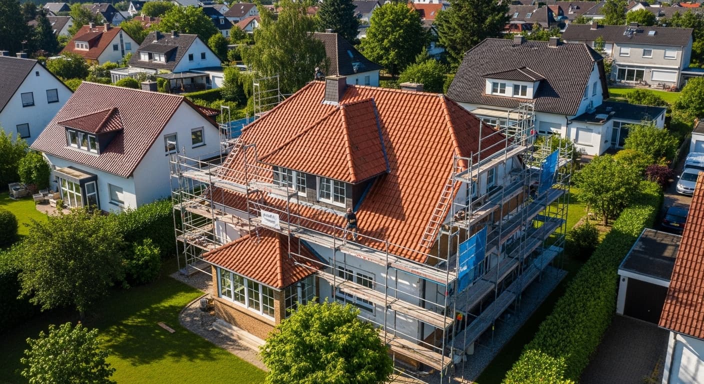 Die folgende Beispielrechnung basiert auf einem typischen Einfamilienhaus in NRW mit Satteldach. Die tatsächlichen Kosten variieren je nach Zustand und gewähltem Material.